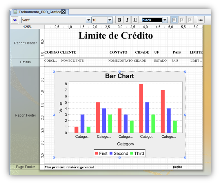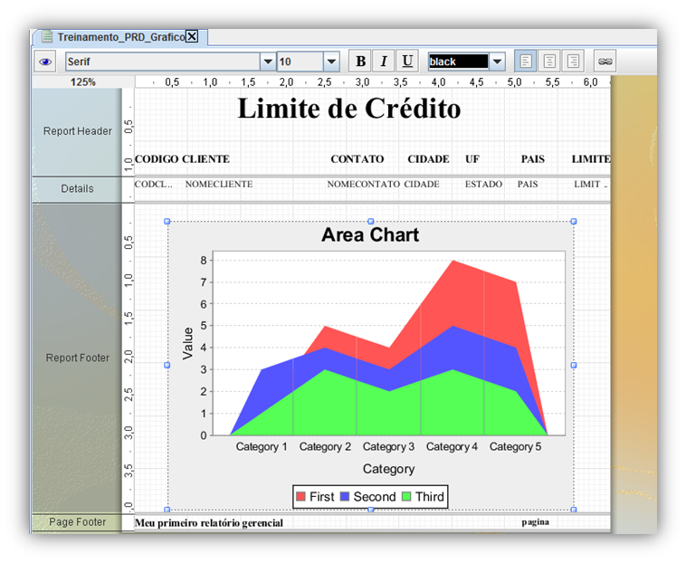 The content inserted into Page Header will appear at the top of the report. It is generally used to present the report name, company logo, description of existing fields or other information that you wish at the top of your report.