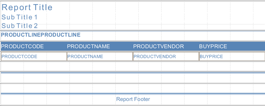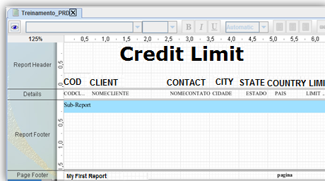 At Report Header the title of the report and the name of fields introduced in Details are inserted.