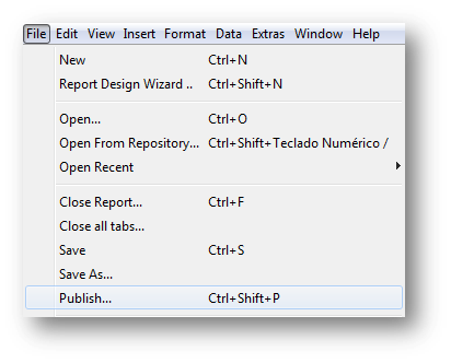 - In order to publish the report, click on File > Publish: