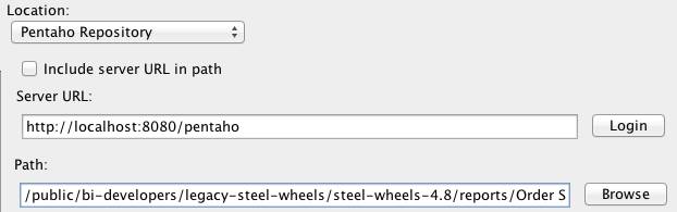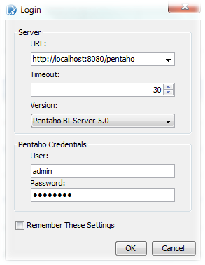 Server URL: http://localhost:8080/pentaho