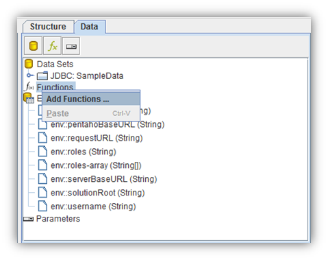 Click on Data and then right click on Functions >> Add Functions