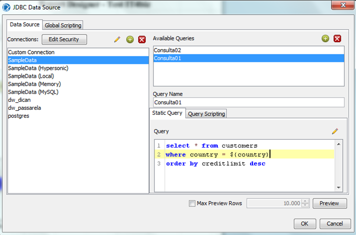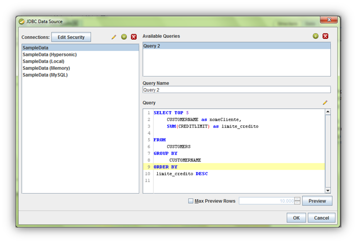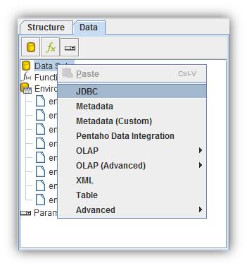 In order to use a data source at Pentaho Reporting, it is necessary to include JDBC drive before the initialization of report development: