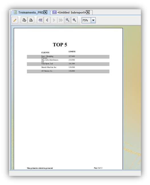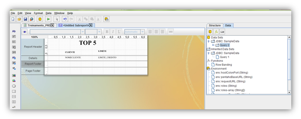In order to create a sub-report that presents the 5 clients with the largest credit limit we have to: