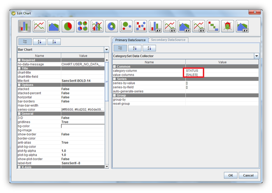 4) Double-click on chart and configure as following: