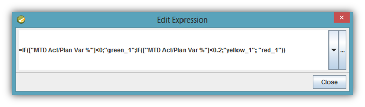 Hence, the images green_1, yellow_1 and red_1 will be exhibited depending on ["MTD Act / Plano Var%"] value.