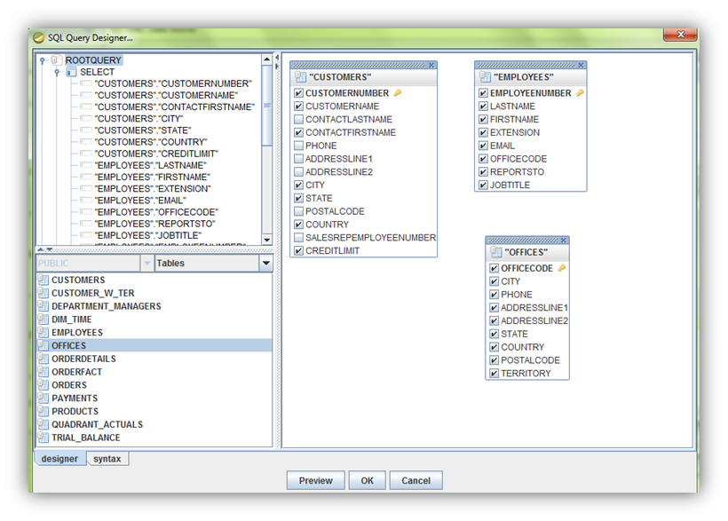 ON "ORDERFACT"."CUSTOMERNUMBER" = "CUSTOMER_W_TER"."CUSTOMERNUMBER"